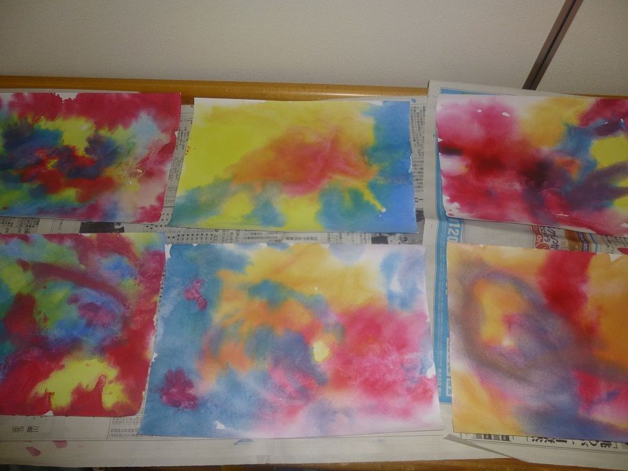 色が混ざって、オレンジや紫ができることに気づき、喜んで楽しんでました〜