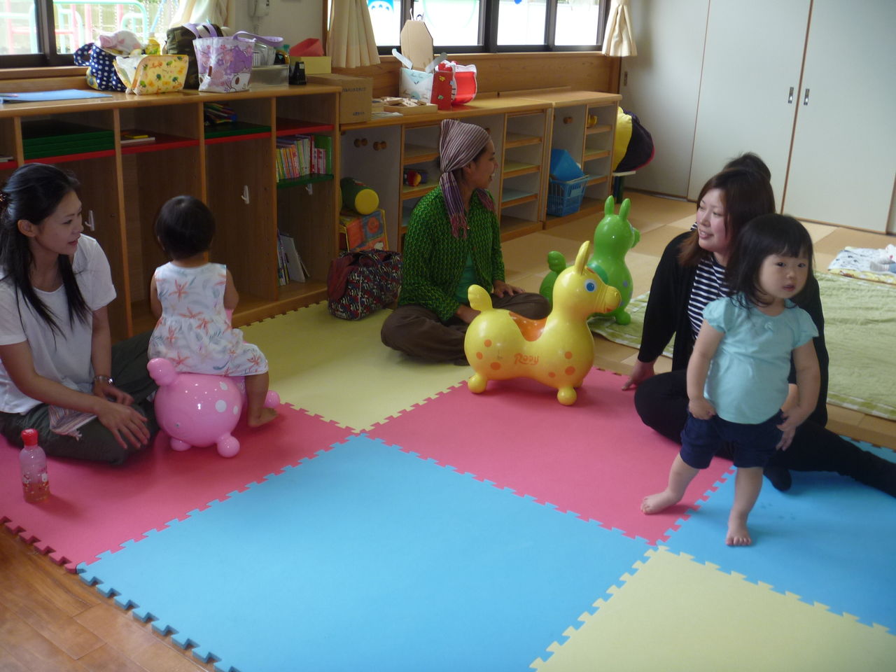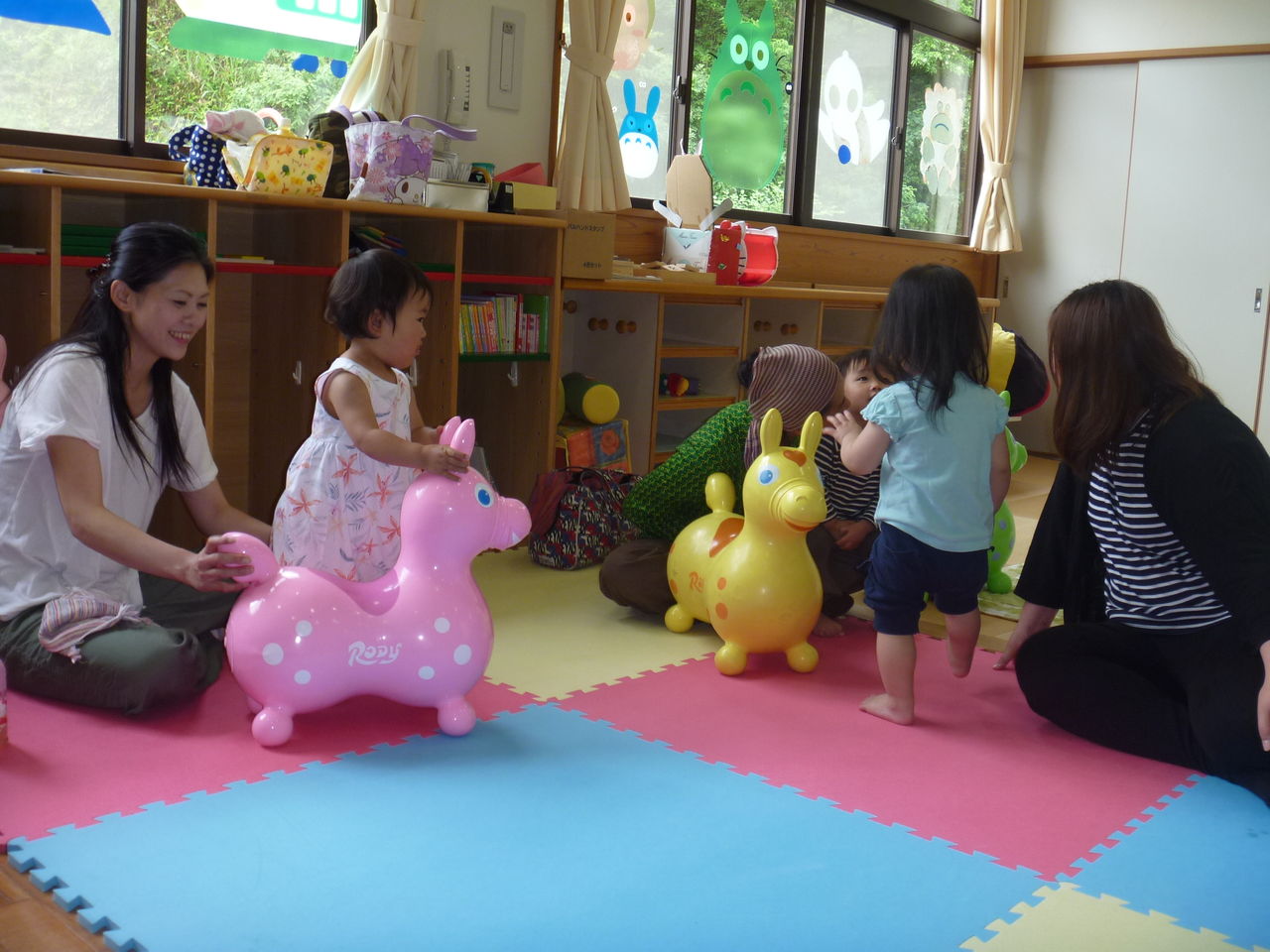 一人ずつ自己紹介をし」、親子でふれあい遊びをしました
