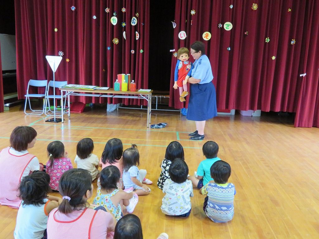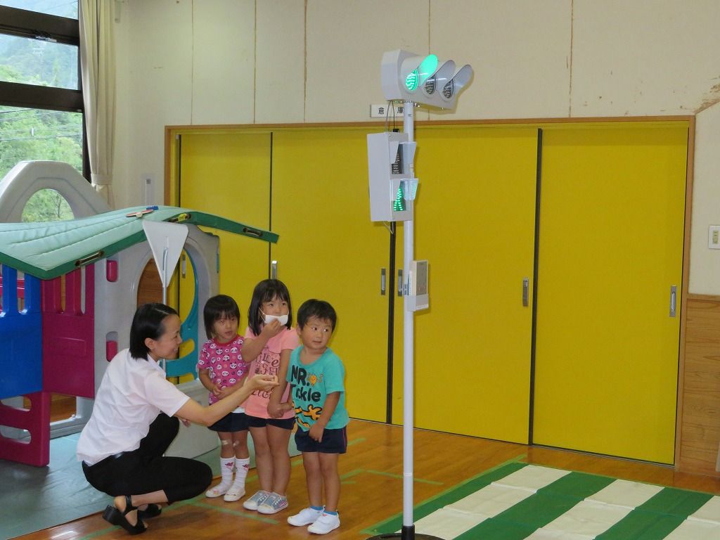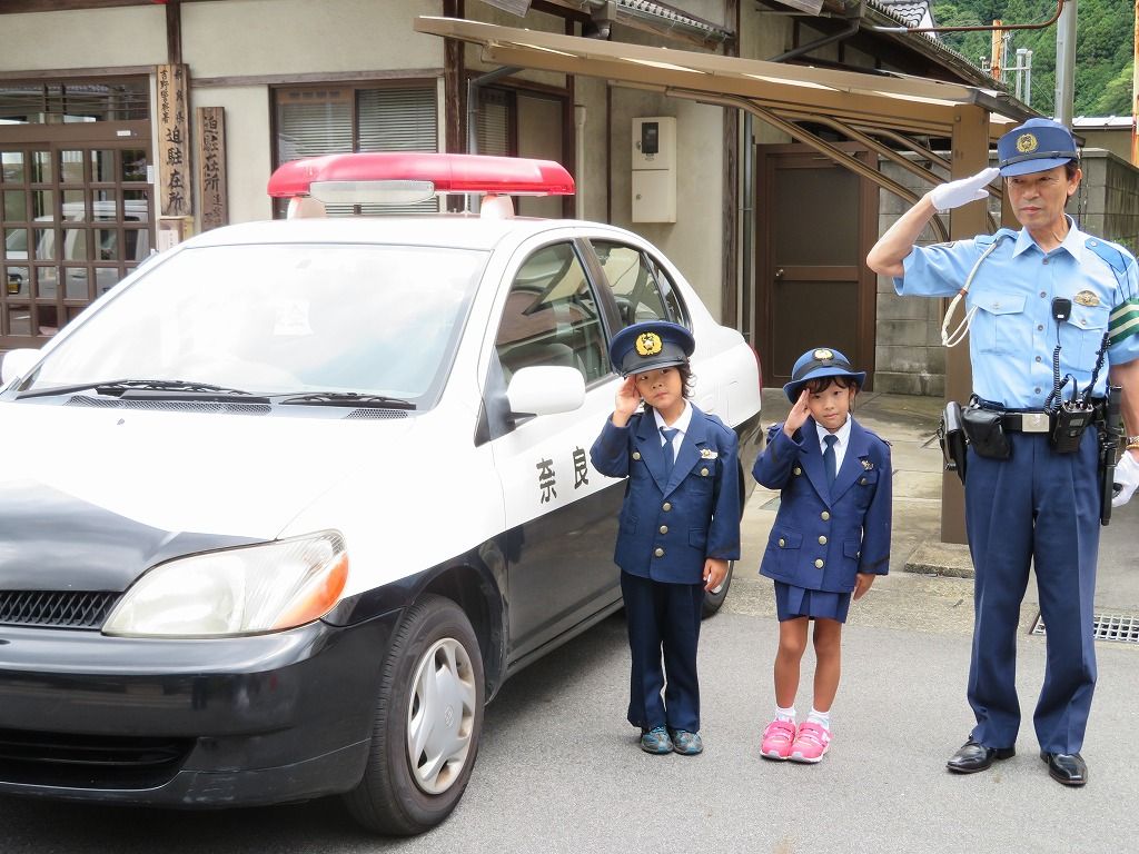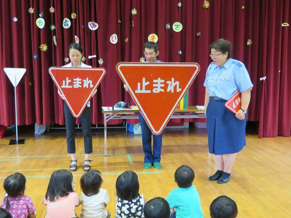 その後保育園では、吉野署の方や県のサポートセンターの方に来て頂き、交通安全教室がありました