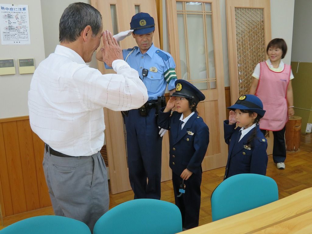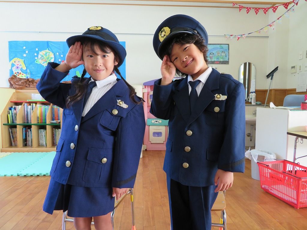 今月の交通安全週間に先がけて、くま組がちびっこポリスに変身しました(☆゚∀゚)