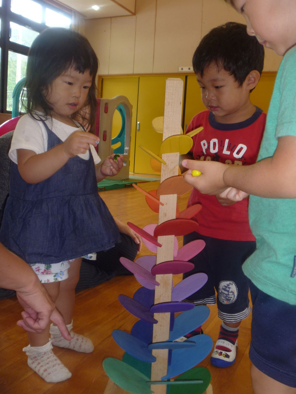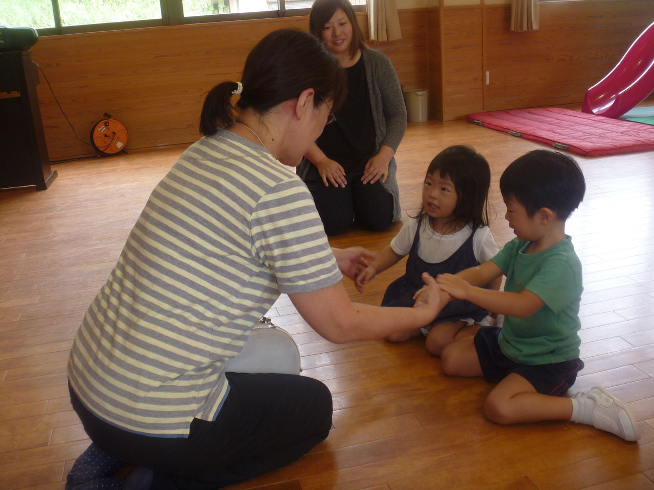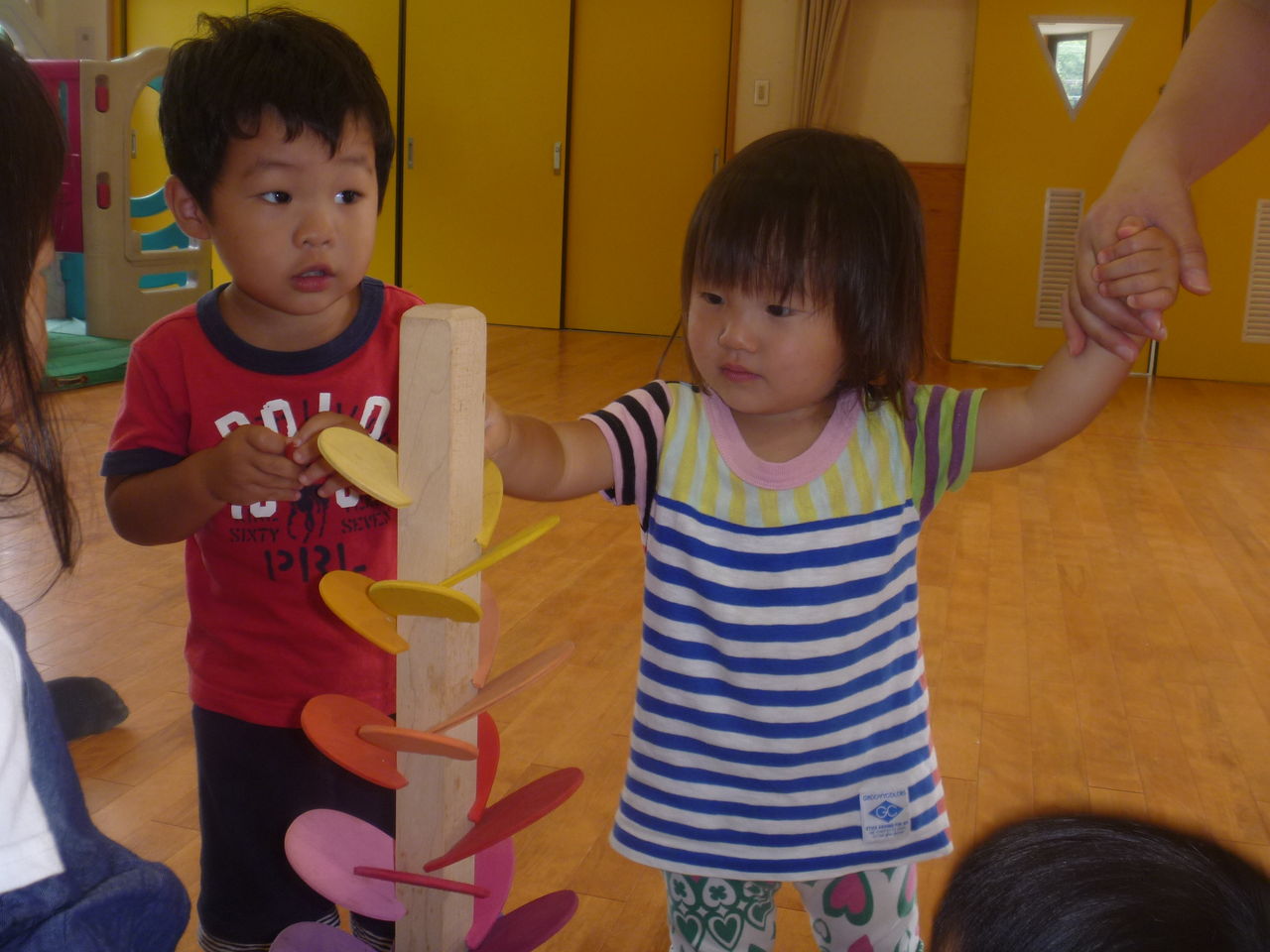 のびっこ広場にお友達も来てくれて、りす・ひよこ組さんと一緒に参加しました。