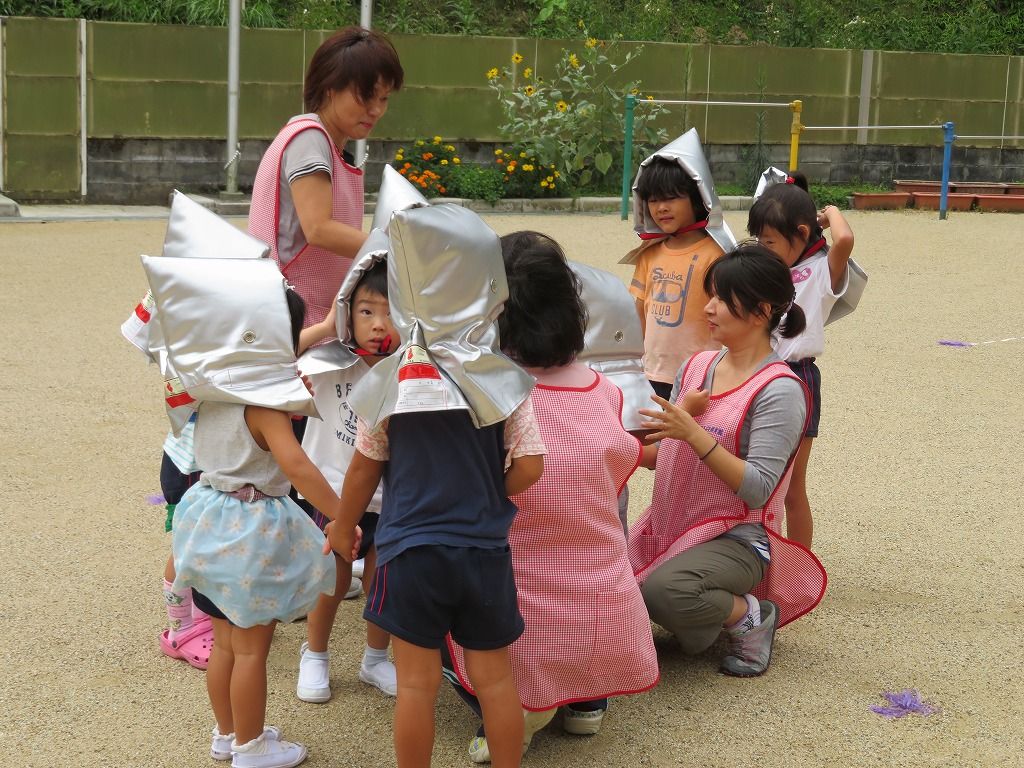 そして揺れがおさまってから、園庭に避難しました(*'-'*)