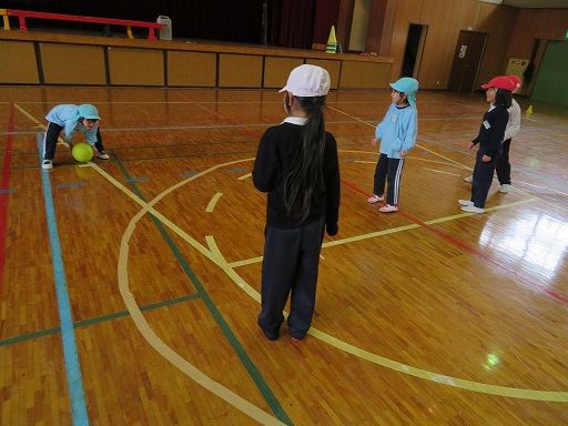 「ころがしドッジボール」1年生は全然当たらなくて、上手だったね〜