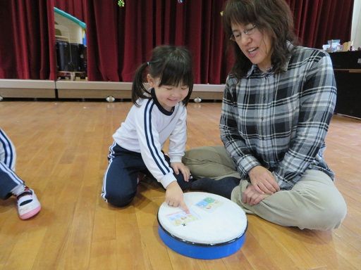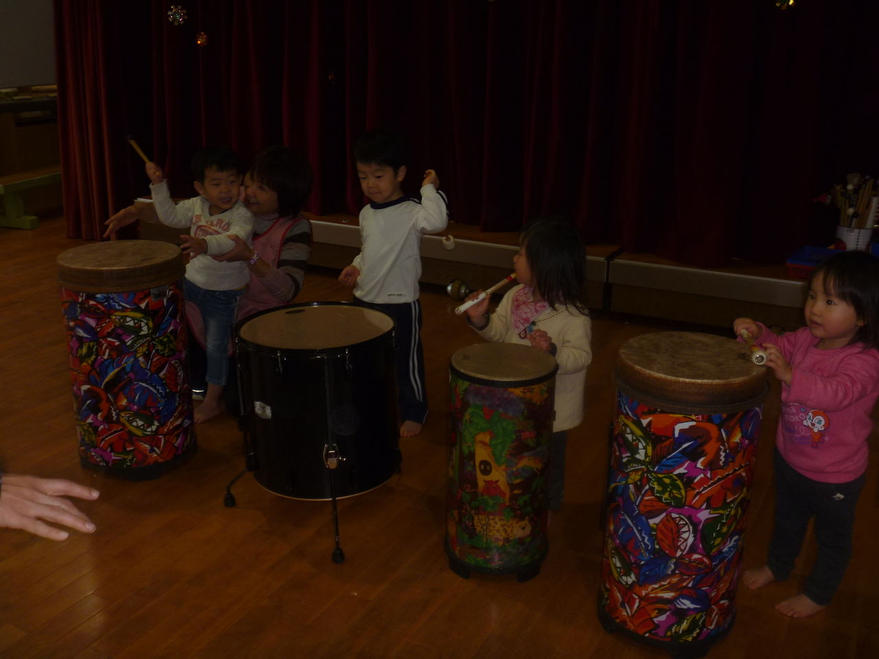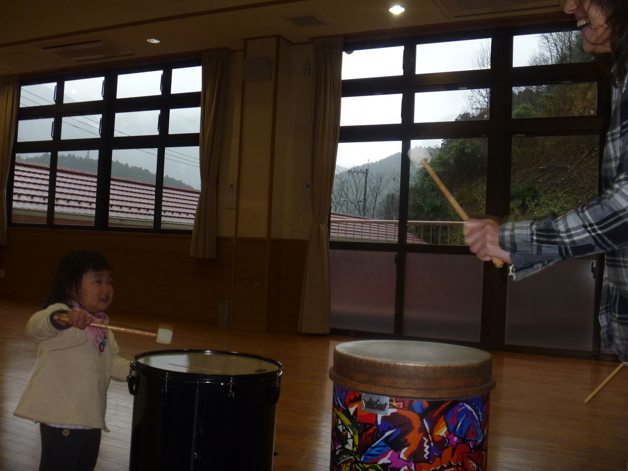 加藤先生と一緒にドラムをたたくのに合わせて、止まったりたたいたりしてドラムを上手にたたいてましたよ~