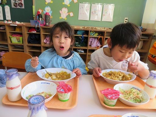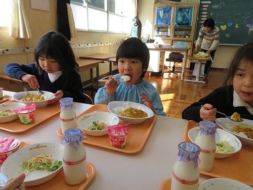 楽しんだ後は、お楽しみの給食で〜す(*゚▽゚*)