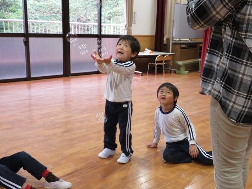 手あそびや、シャボン玉を追いかけたり、音楽に合わせて身体を動かしてリズムあそびを楽しむことができました〜。(o^∇^o)ノ