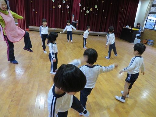 体を動かす元気な動き。。。音楽に合せたり、止まったり。。。