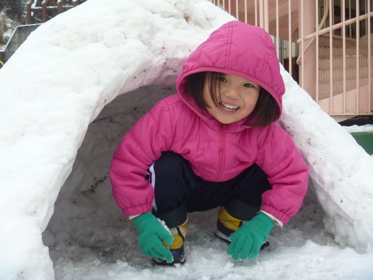 「みてみて〜」と初めてのかまくらに喜んでいました。(☆゚∀゚)