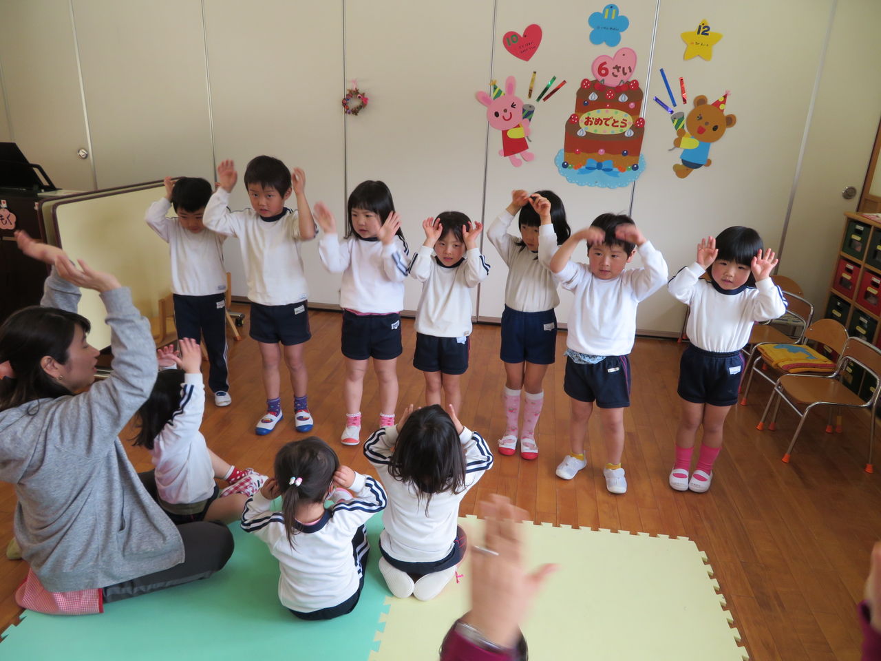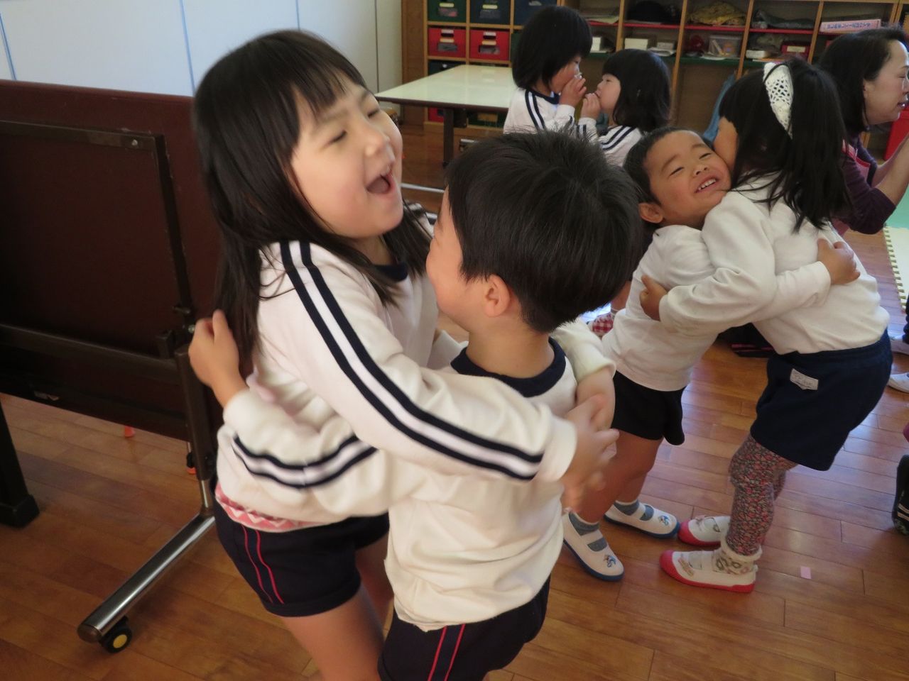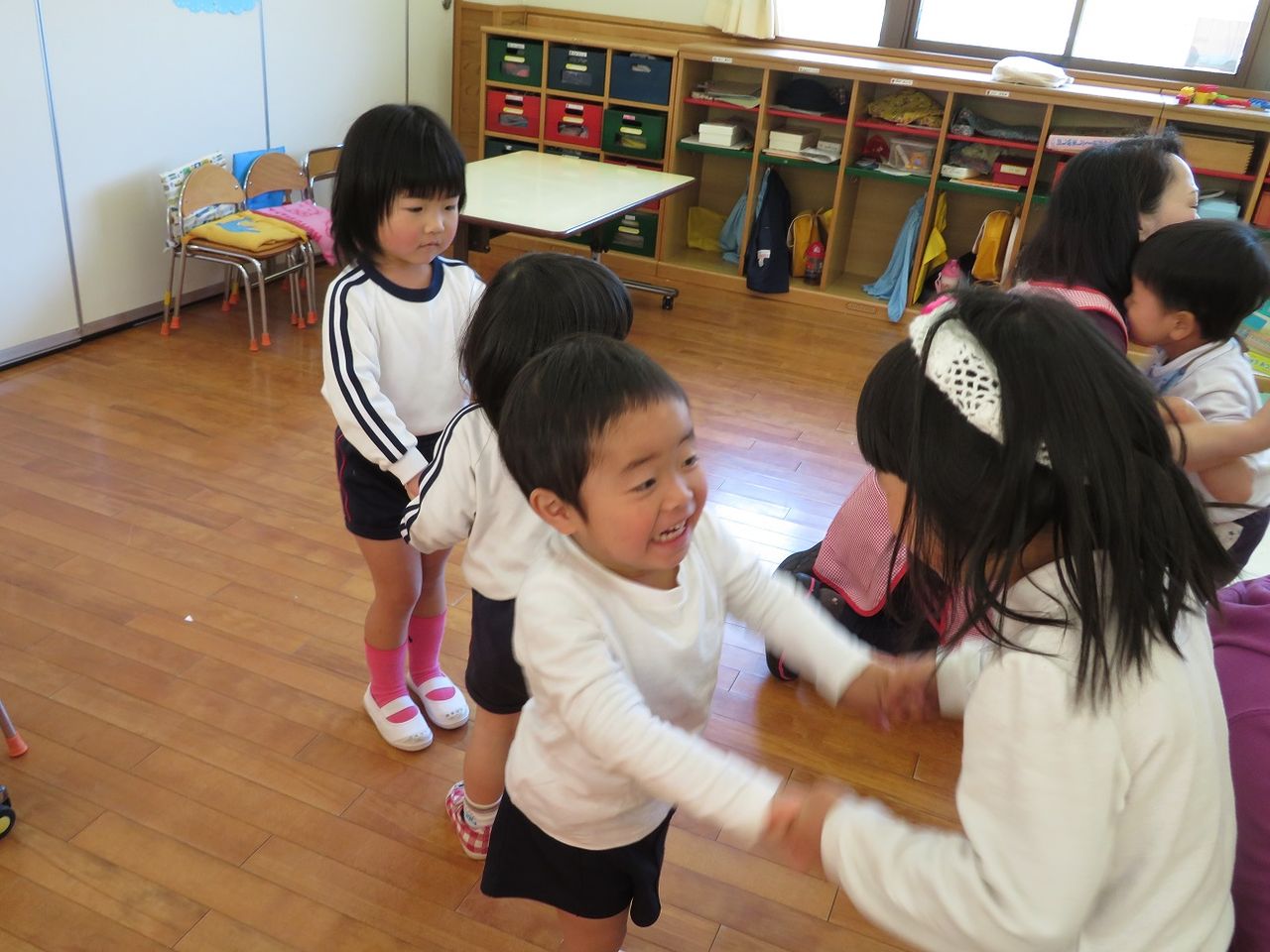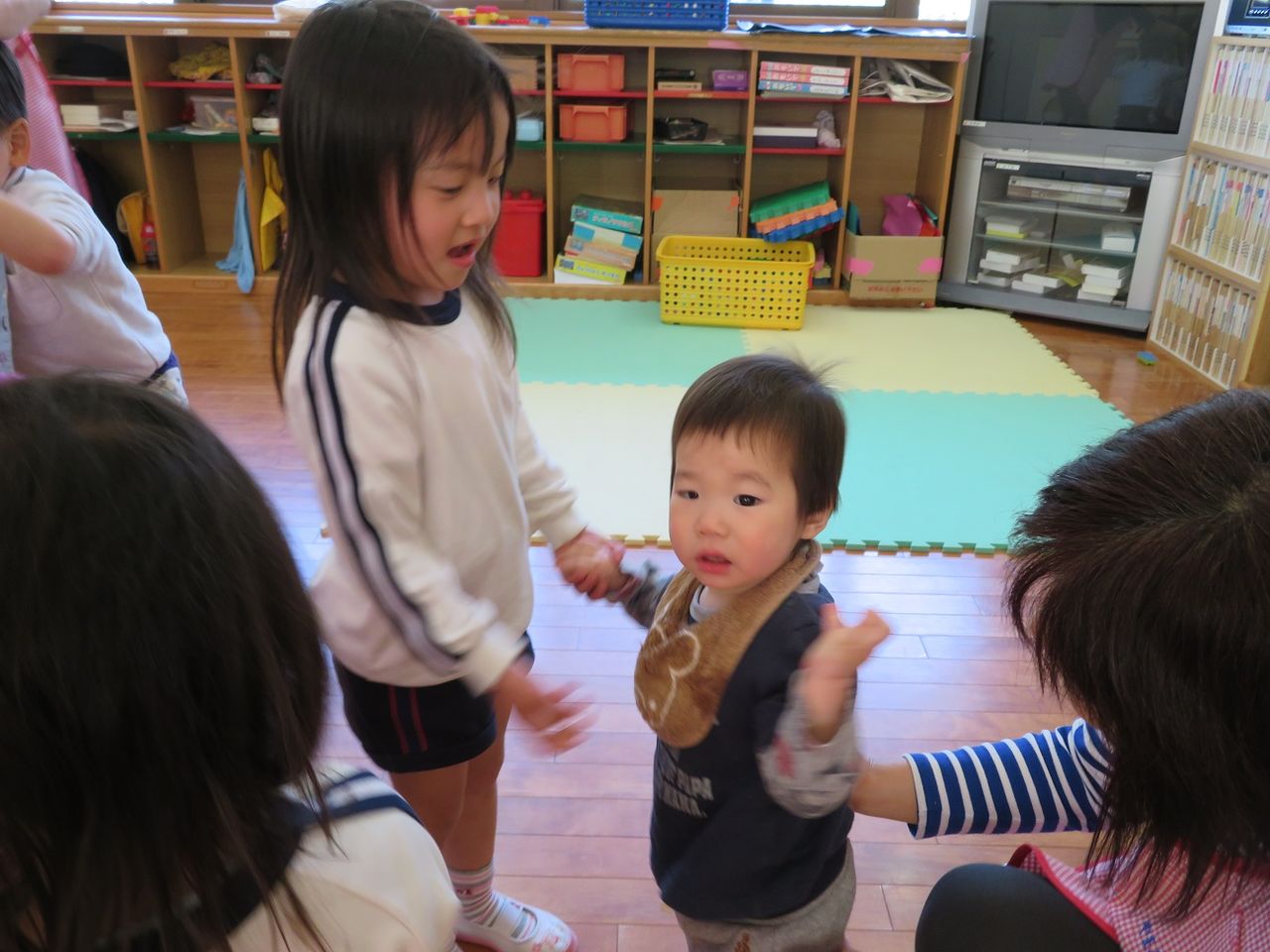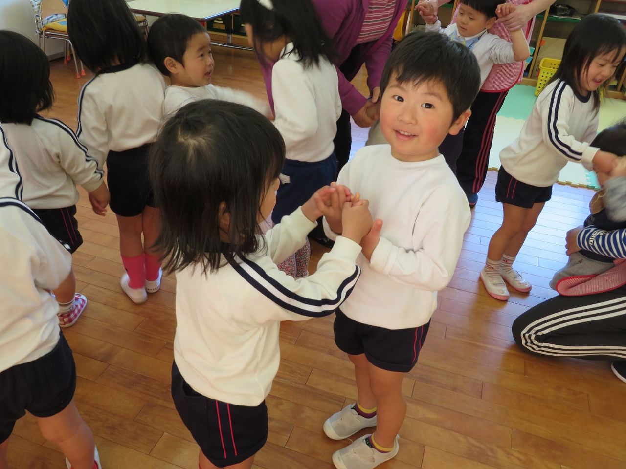 そのあとは、みんなでふれあい遊び「あくしゅでこんちわ」をしてあそびました。