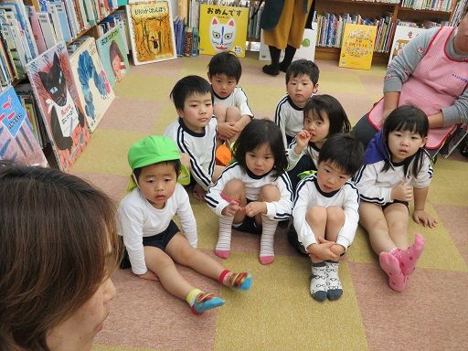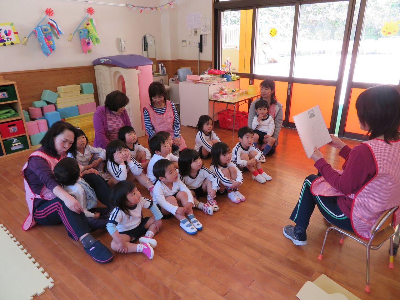 先生から地震の話を聞いたり、紙芝居を見て、避難の仕方を教えてもらいました。。。