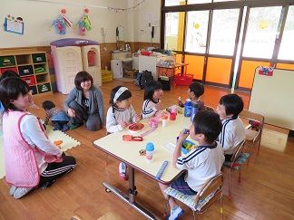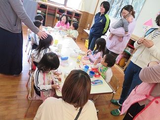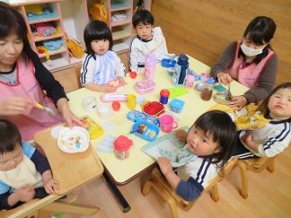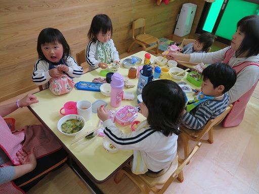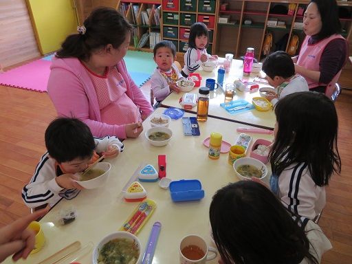 新入園児のお友だちもちゃーんと座って、しっかり食べていますよ