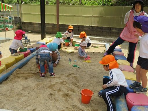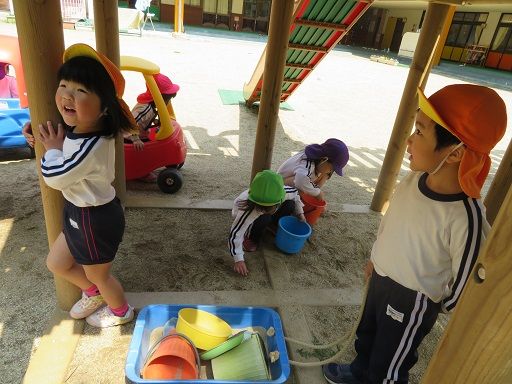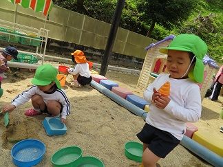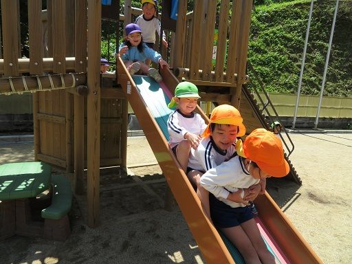 今日もいい天気で、避難訓練の後は外遊びを楽しみました〜(・∀・)
