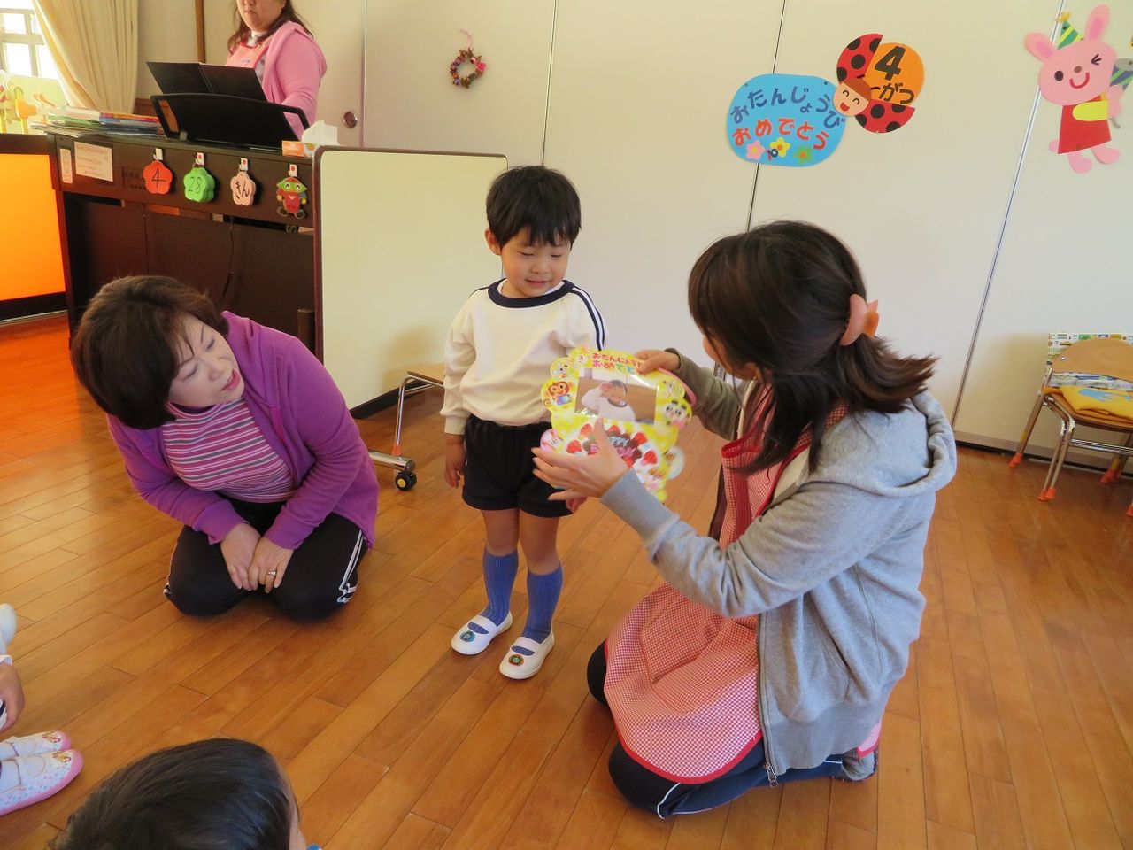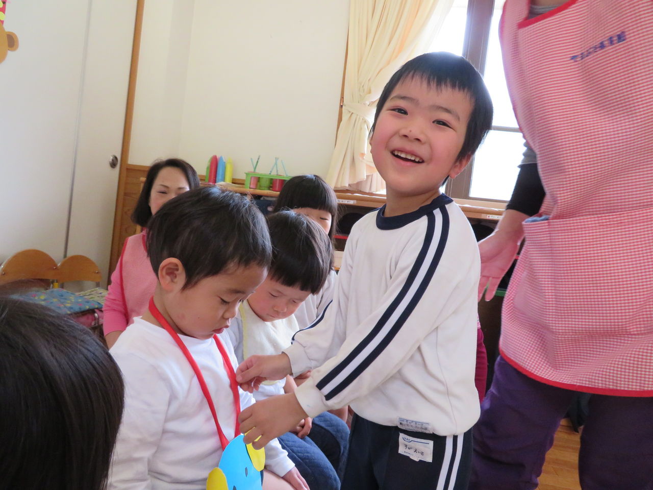 乳児クラスのお友だちでしたが、みんなの前で名前と歳と好きな食べ物をちゃんと言ってくれましたよ('▽'*)ニパッ♪