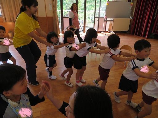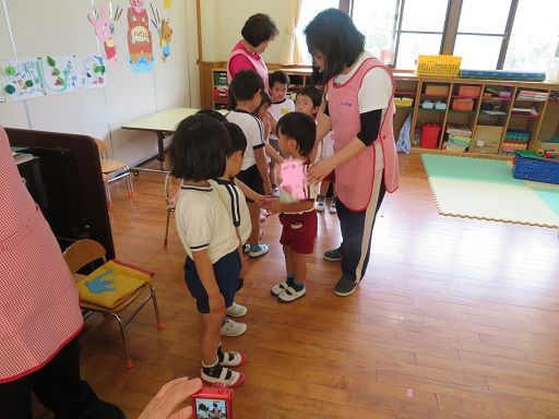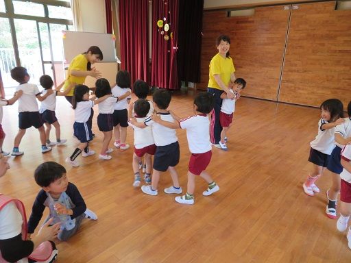 一人ずつあいさつするのを恥ずかしがっていた子も遊んでいるうちにだんだんと大きな声で言えるようになっていましたよ