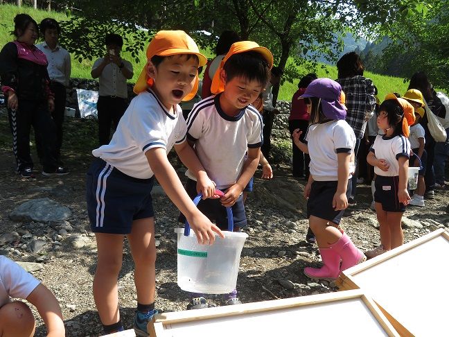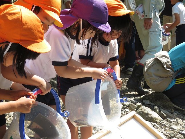 「大きくなってね〜」「元気でね〜」などなど、みんな口々に言いながら放流しました