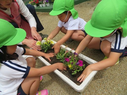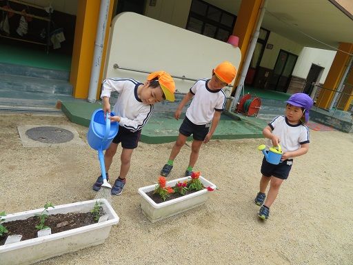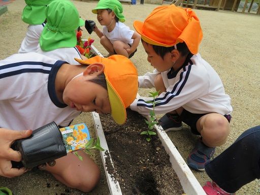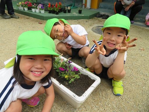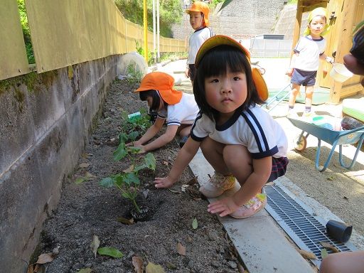 幼児組は今週の半ば、お花と野菜の苗を植えました(*'-'*)