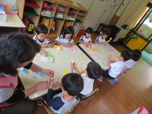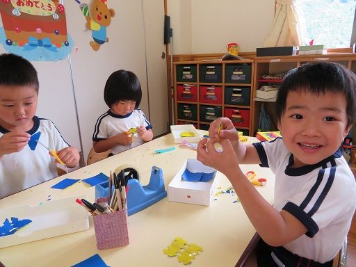 はさみの使い方や、のりの使い方がきりん組さんは上手になり、
