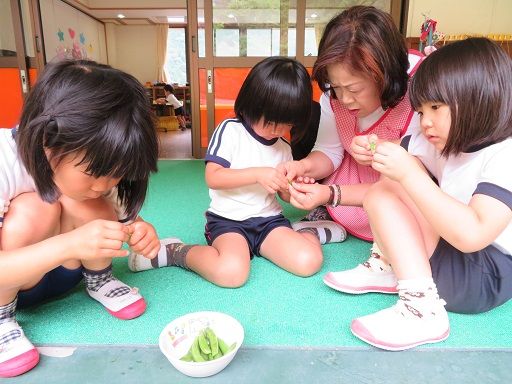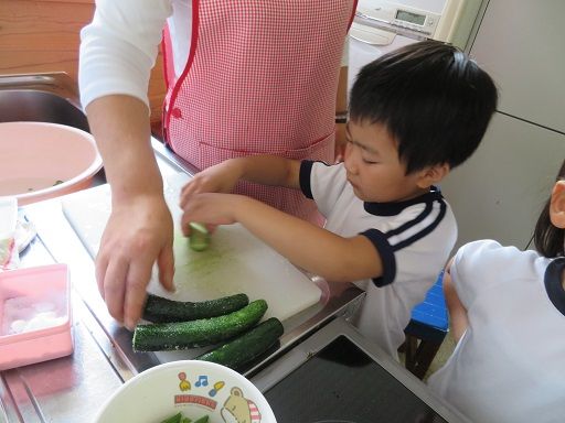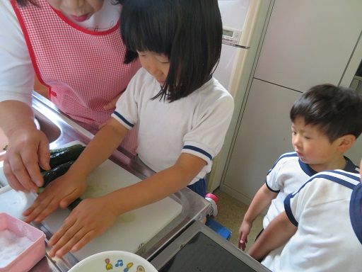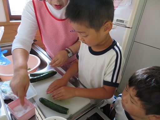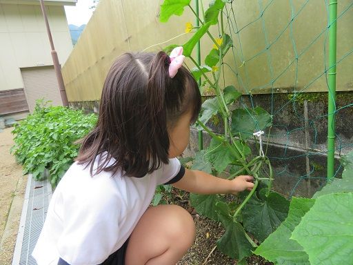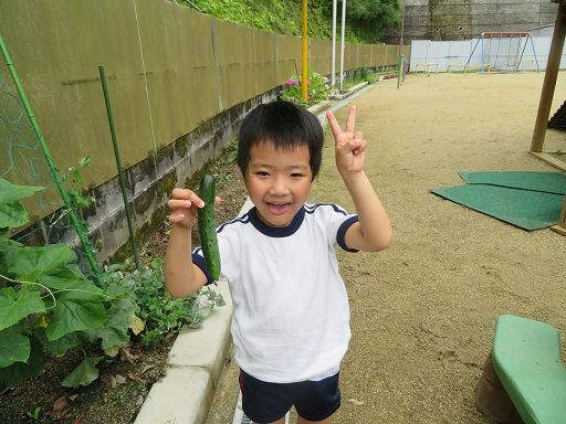 園の畑に植えた野菜が少しずつ実ってきました〜(*'-'*)