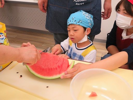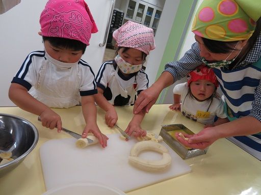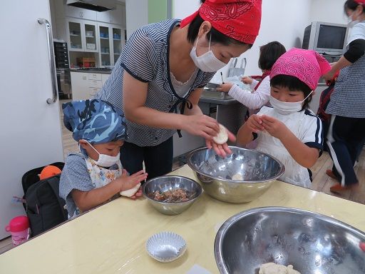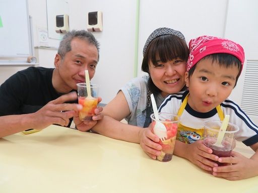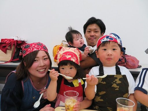 汗をかいた後は、栄養室に移動して親子クッキングをしました〜