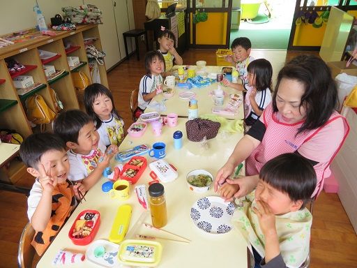 今日も保育園で「豚まんおいしかった〜」や「きりんになってたかーくあげてもらったのが楽しかった〜」