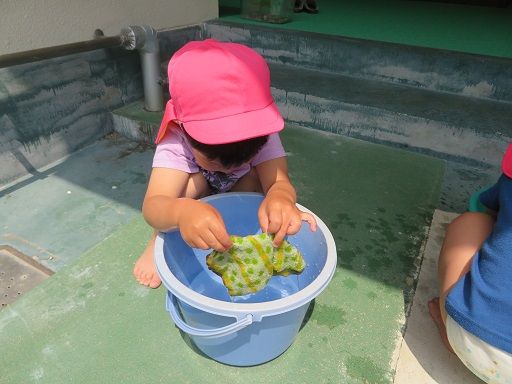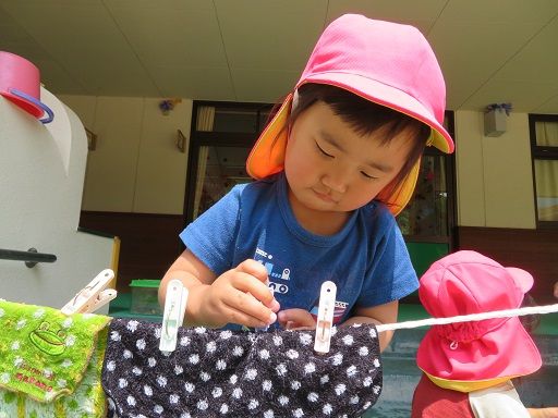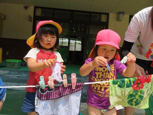 今週は、お天気も良くて暑くなってきたので、泥んこあそびや洗濯ごっこなど楽しむことができました。(o^∇^o)ノ