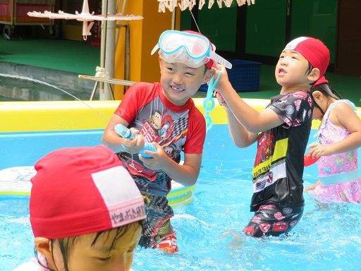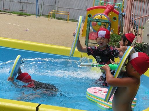 ビート板や水鉄砲を使って遊びました!!