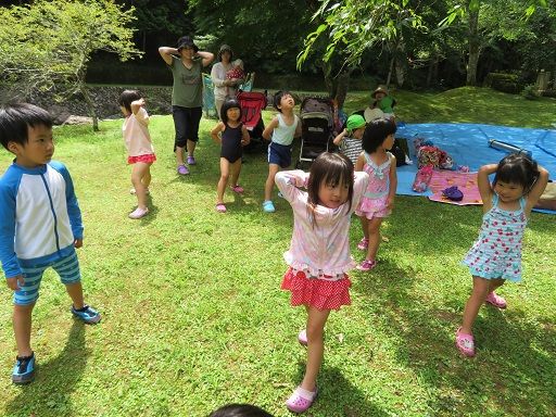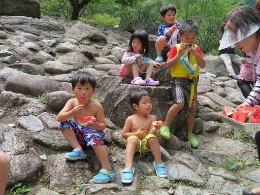 お家の人と西河の蜻蛉の滝に集合し、子どもたちは朝から水着を着てとってもうれしそう(☆゚∀゚)