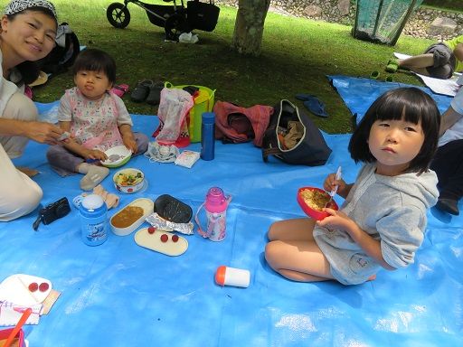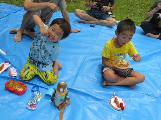 しばらく川で遊んだあとは、役員のお母さん方が作ってくれたカレーとフランクフルトを昼食にいただきました