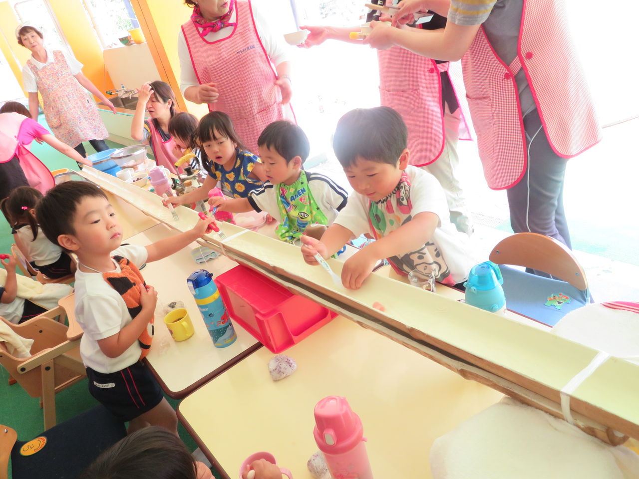 何が流れてくるかな〜とワクワクしていた子ども達。