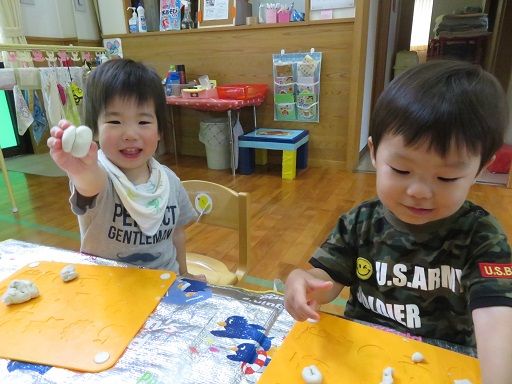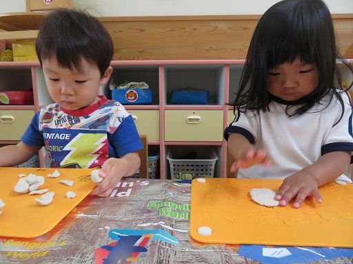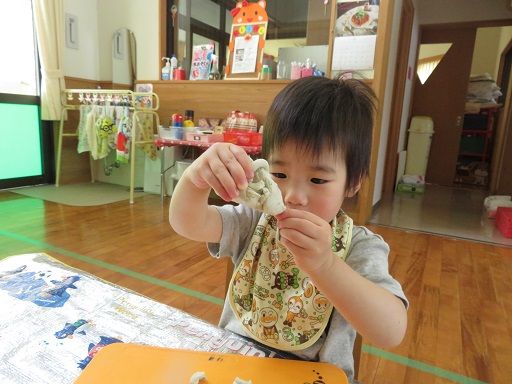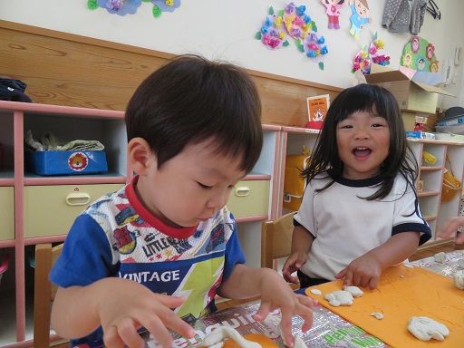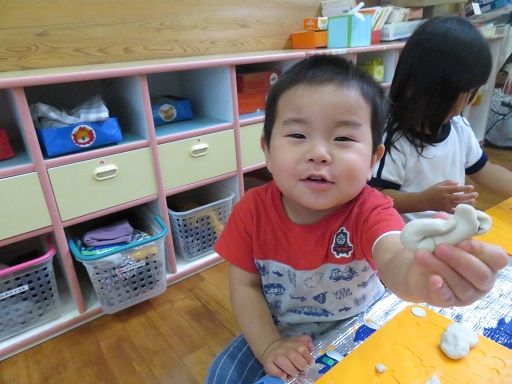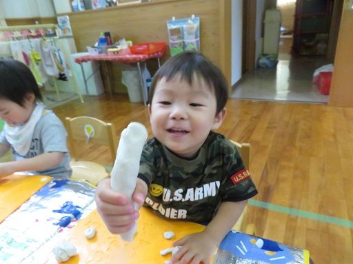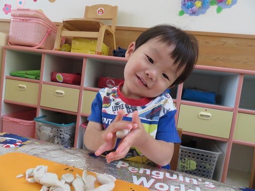 指でちぎったり、コロコロ丸めたり、ながーく伸ばすのも上手になりましたよ(*゚▽゚*)