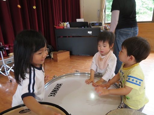 太鼓に響く振動を楽しむ姿もみられました〜(* ̄∇ ̄*)エヘヘ