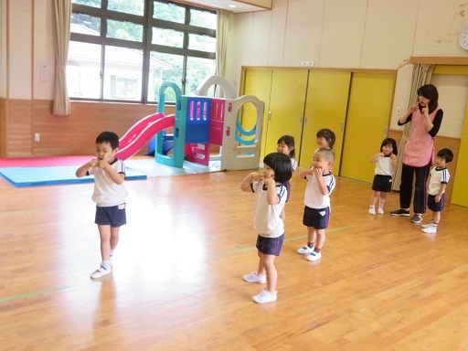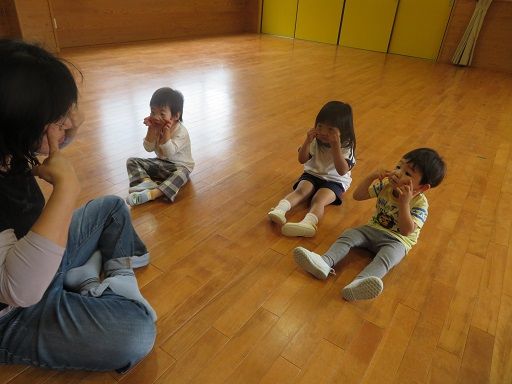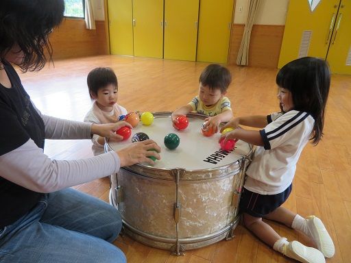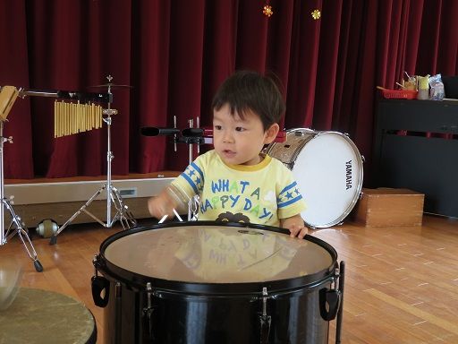 手遊びをしたり、いろいろな楽器に触れたり、音楽に合わせて体を動かしたり。。。。(o^∇^o)ノ