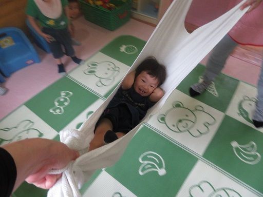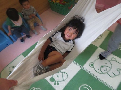 先生たちにシーツブランコをしてもらうのがだーいすき