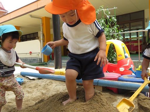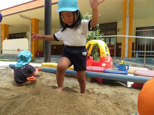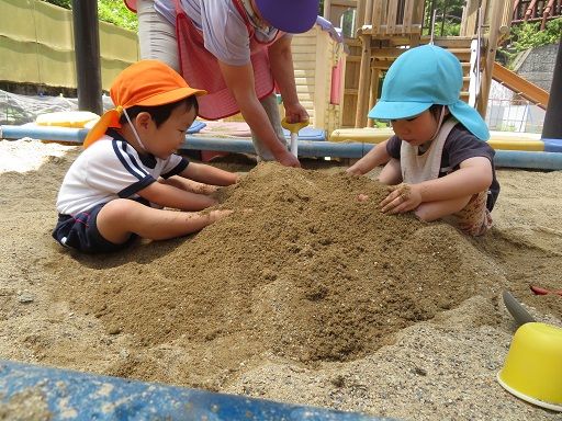 大きな砂山を作って、踏ん張ってのぼったりして楽しみました