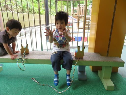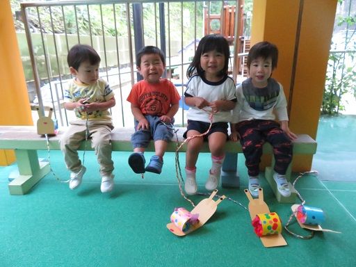 雨の日が多く、園内遊びが多かったですが、カタツムリを作ってうれしそうにお散歩をしましたよ