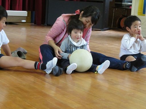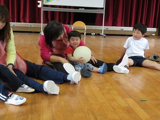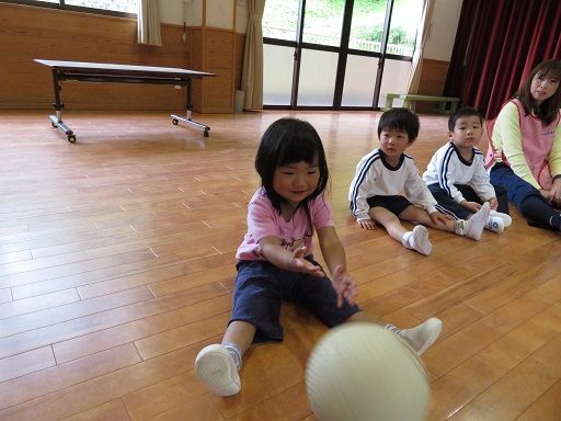 それからみんなで、ボール転がしをしたり、音楽に合わせて体を動かしたりしました