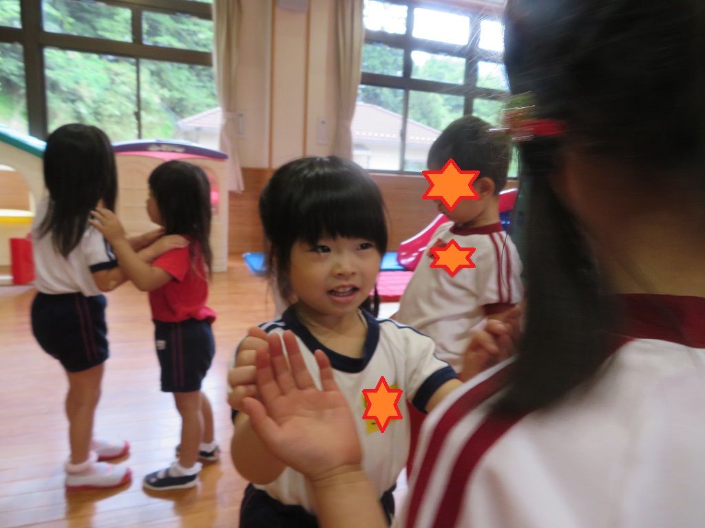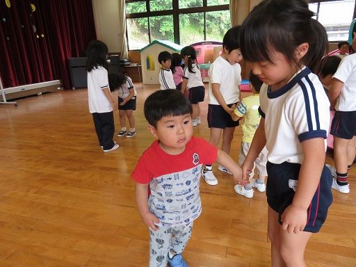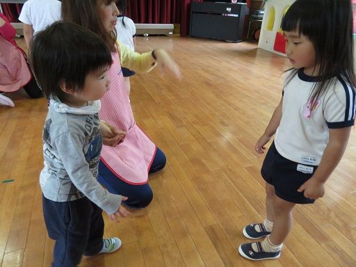 大きい組のお友だちも、ボールがくると小さいお友だちに「どうぞ」って渡してくれたりして、りす・ひよこ組はとっても楽しそうに遊ぶことができました〜