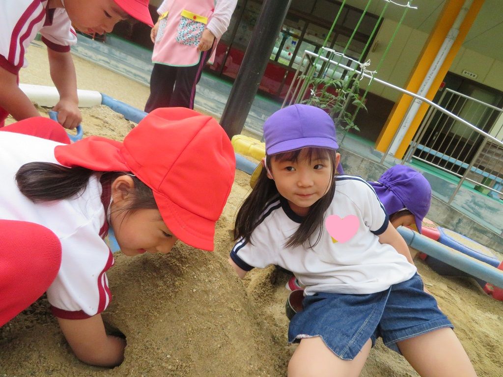 お昼からは、緊張もとけて「○しろまる○しろまるちゃん、一緒に遊ぼう〜」「トンネル作ろう〜」と誘って、仲良く遊びました。