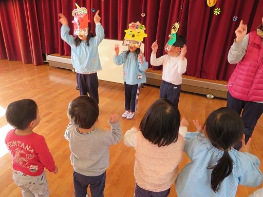 手遊び「オニのパンツ」では、くま組さんがオニに変身して、