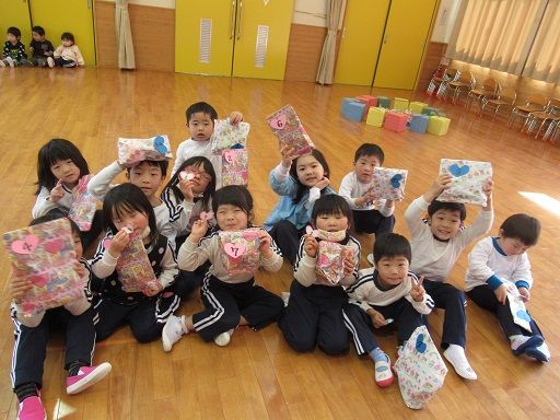 うさぎ組さんはお歌♪、きりん組さんは鉛筆立てのプレゼントをしてくれて、大喜びのくま組さん