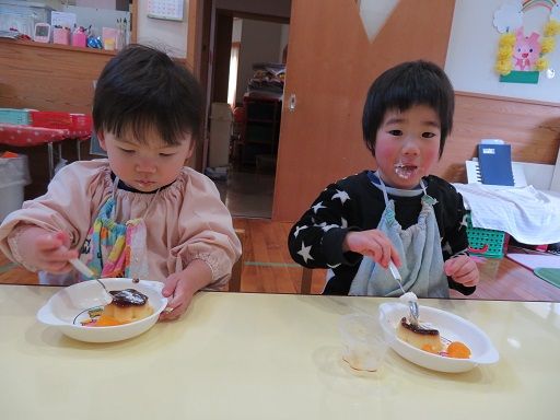 おやつには、お楽しみのおいしいプリンをいただきました(o^∇^o)ノ