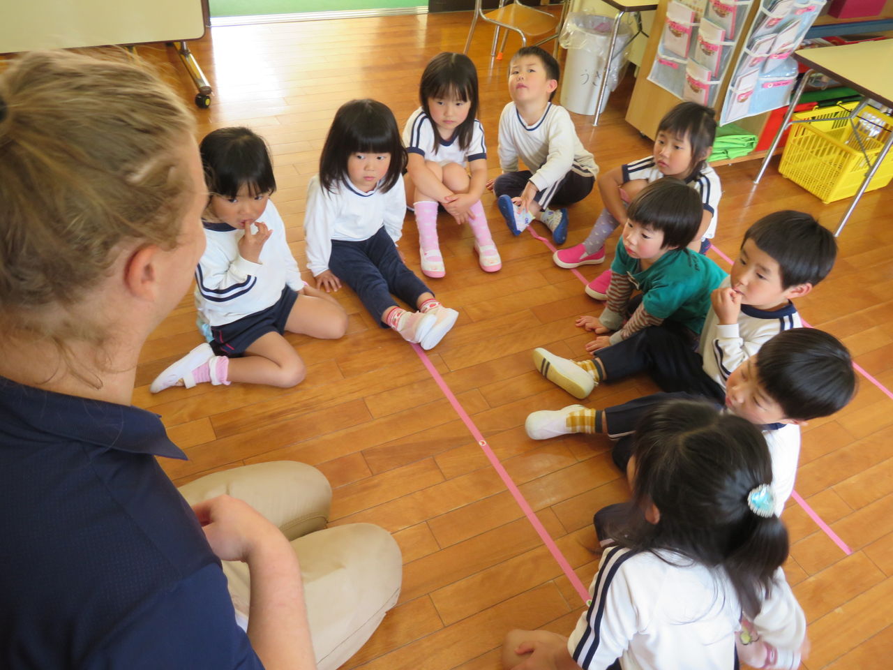 挨拶や自分の名前を言うのも慣れてきていて、しっかりと英語で言うことができました