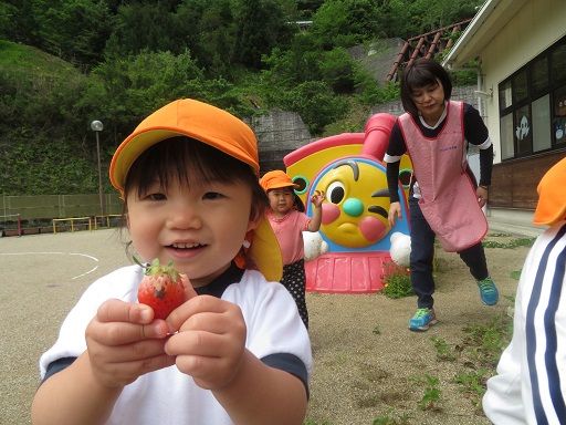 みんなで摘んだイチゴ、とっても美味しくておかわりもたくさんしました