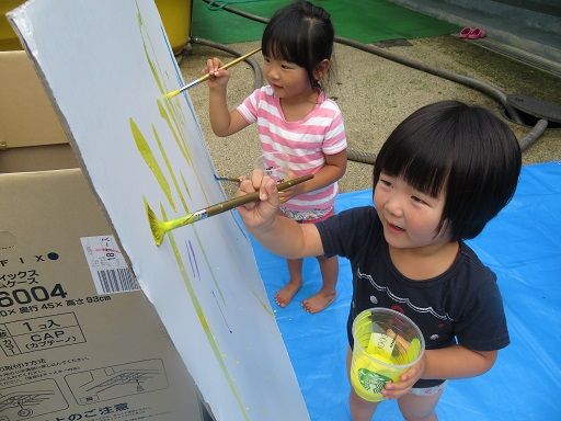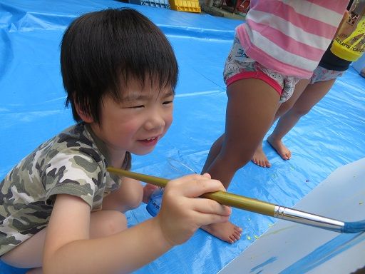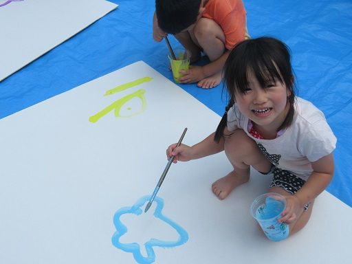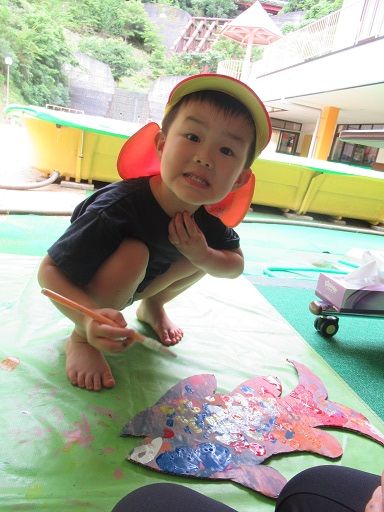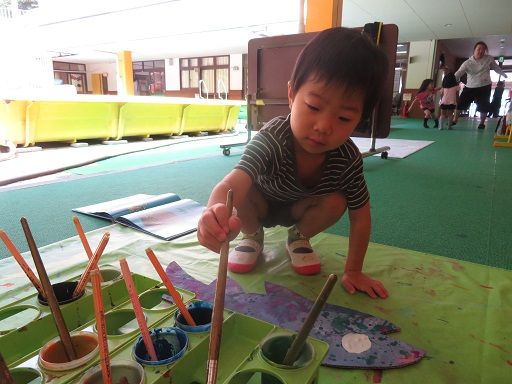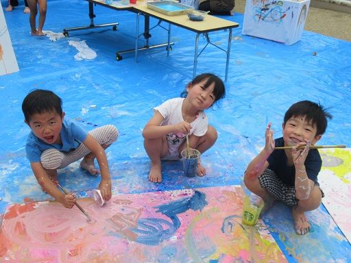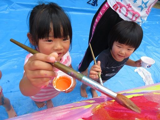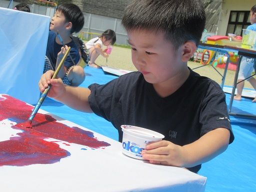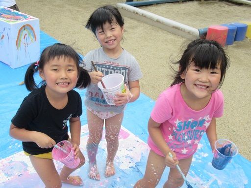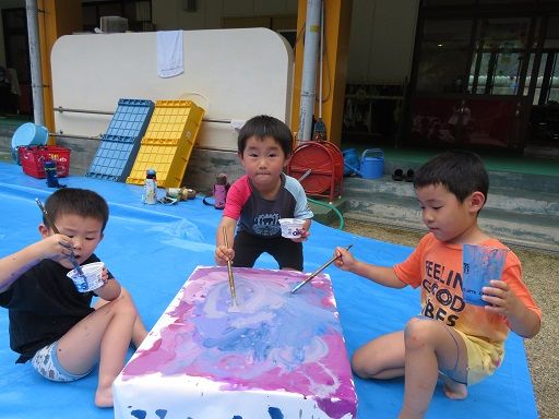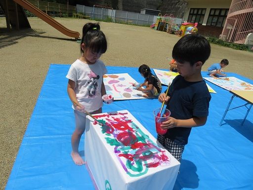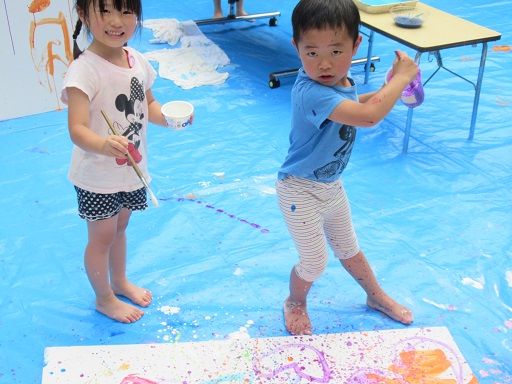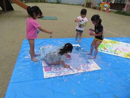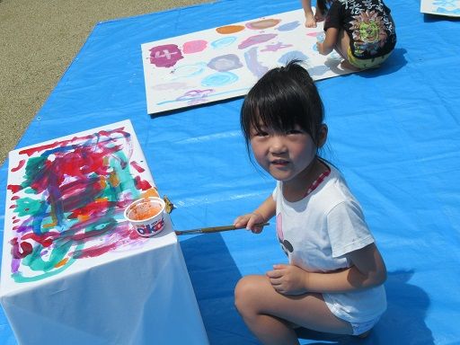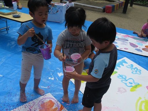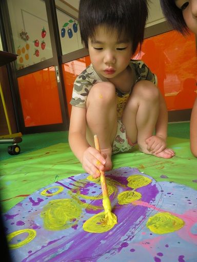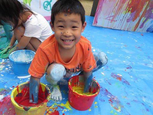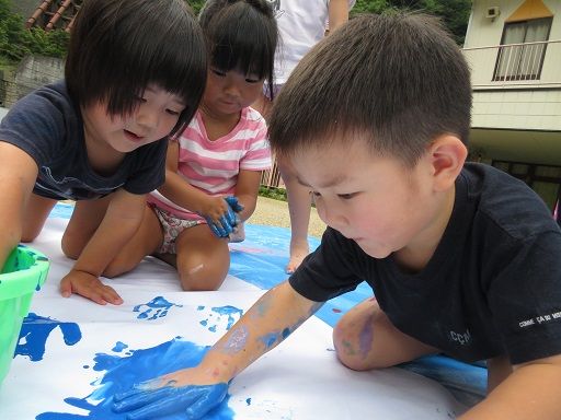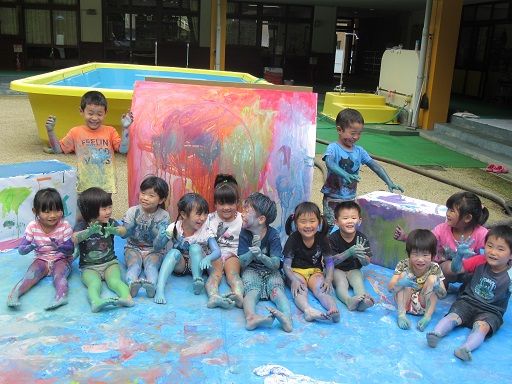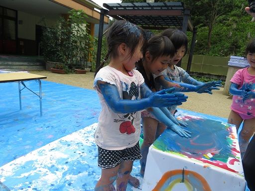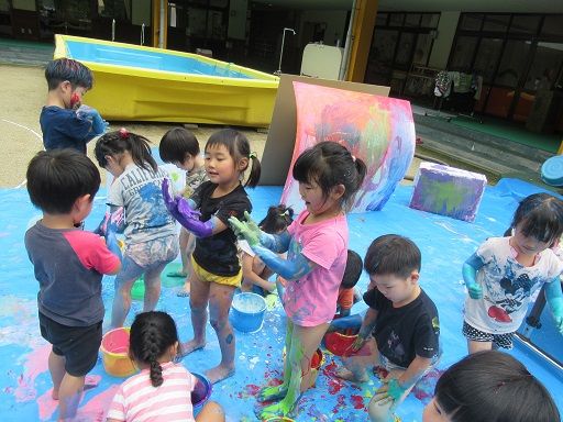 絵の具遊びで、みんなが