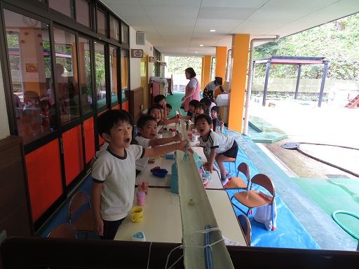「はやく流してくださ〜い」や「トマト流して〜」などなど、大さわぎの楽しい会になりましたヾ(=^▽^=)ノ