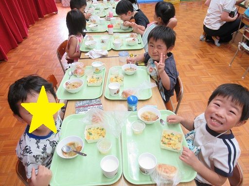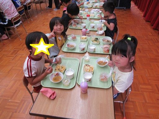 園に戻るとみんなで給食〜