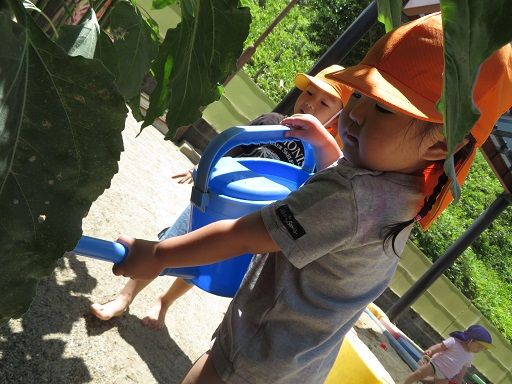 また、お野菜やお花にも積極的にお水をあげてくれています