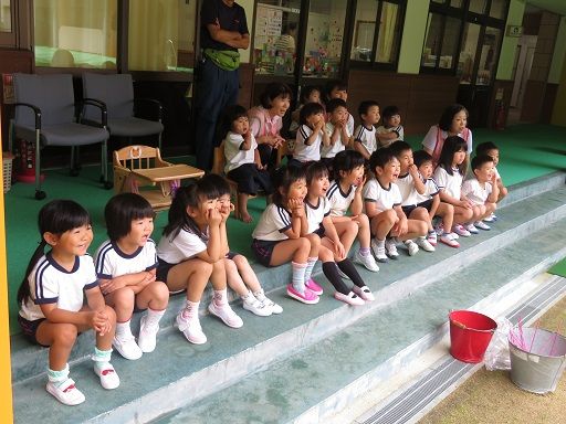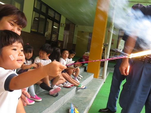 今日は、吉野広域消防署から子どもたちに、花火の遊び方を教えに来て下さいました!