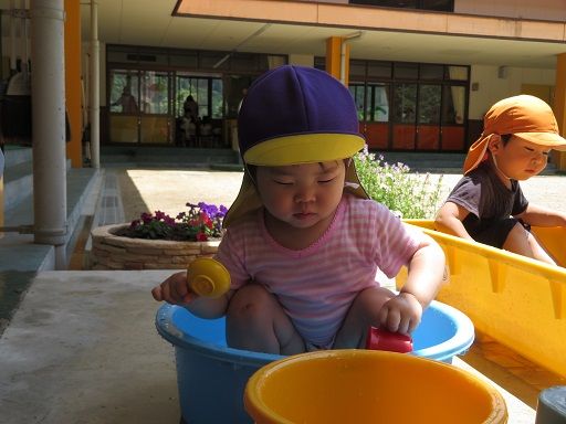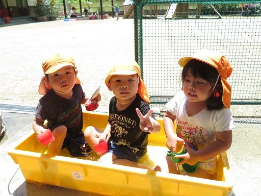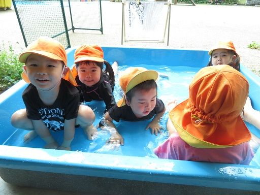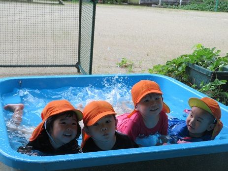 天気の良い日にはみんなで思いっきり楽しく水遊びをしました