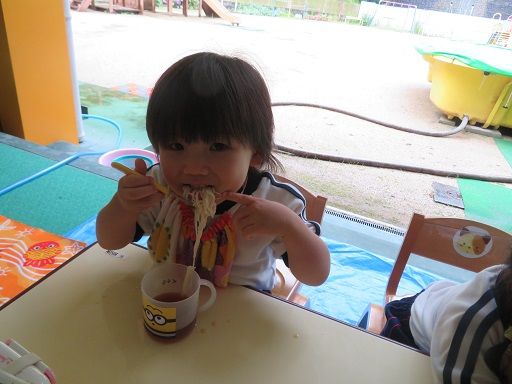 流しそうめんを初めて体験するお友だちも、不思議そうに流れてくるそうめんを見て喜んでいましたよ('▽'*)ニパッ♪